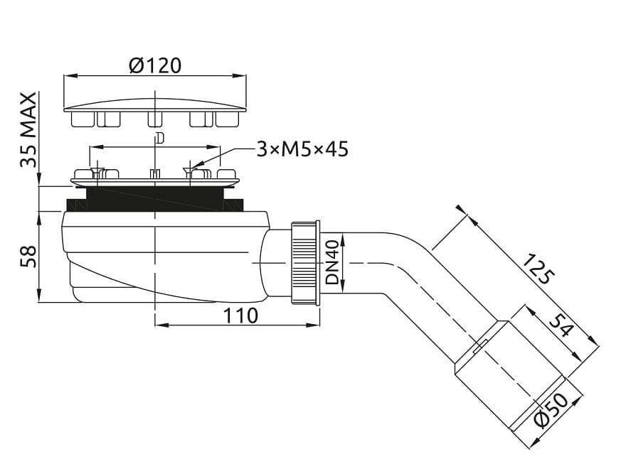 - Bardzo płytki ( tylko 58 mm) syfon do brodzików czyszczony od góry, z podwyższoną prędkością spływu wody (40,5 L). Pokrywa wykonana ze stali nierdzewnej.