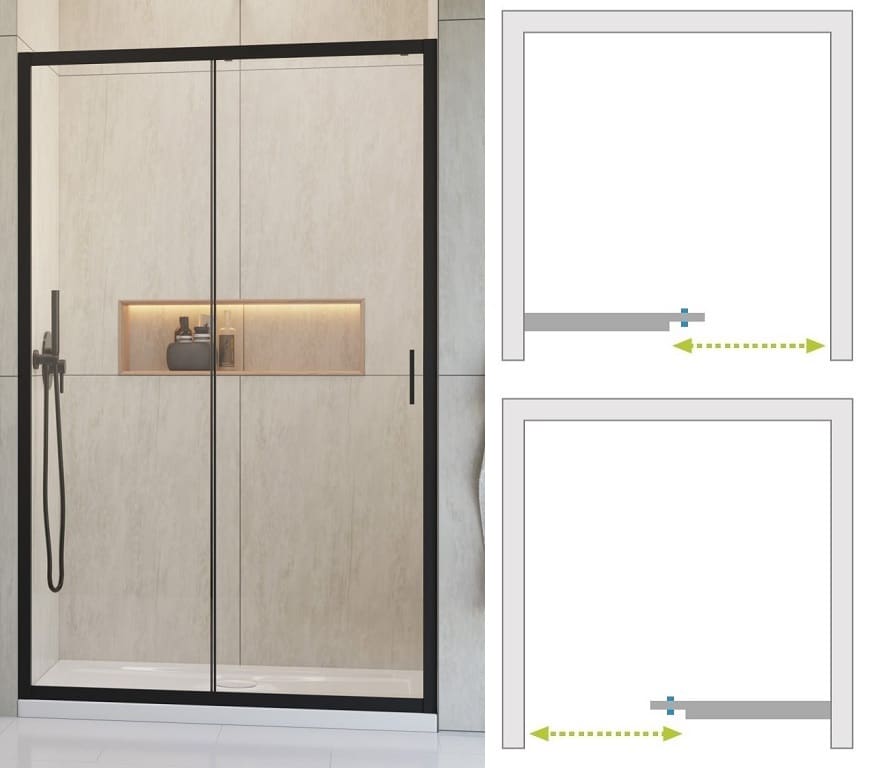 ALIENTA Black DWJ 120 x 190 drzwi wnękowe prysznicowe z drzwiam przesuwnymi profile czarne Radaway
