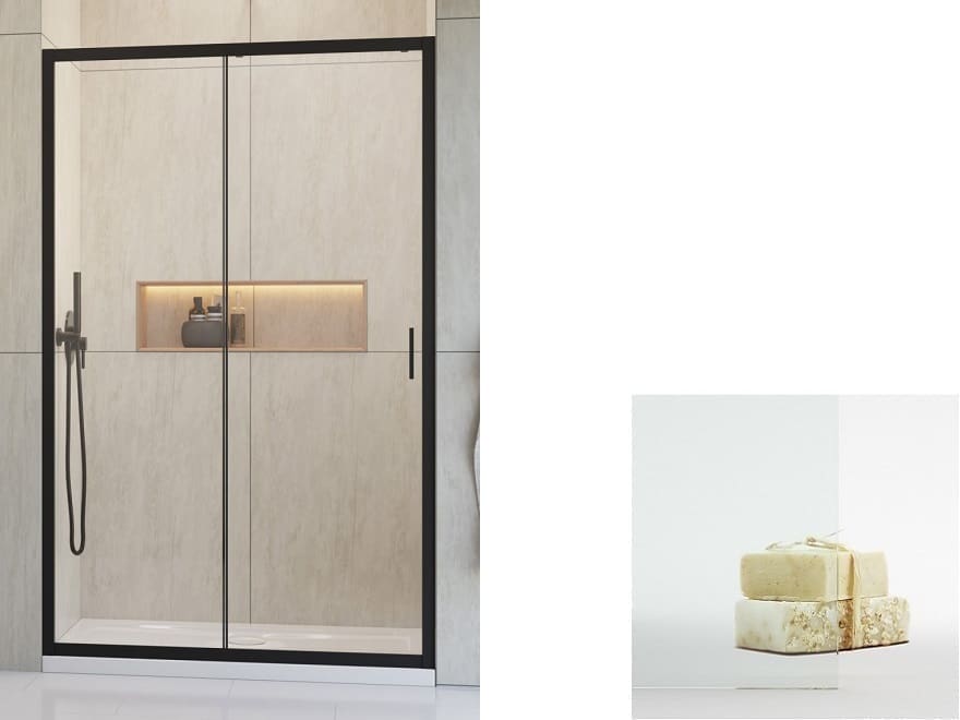 Powłoka ochronna ułatwiająca czyszczenie kabiny prysznicowej. Dzięki właściwościom hydrofobowym powłoki krople wody nie utrzymują się na powierzchni szkła, tylko spływają, nie pozostawiając osadów.
