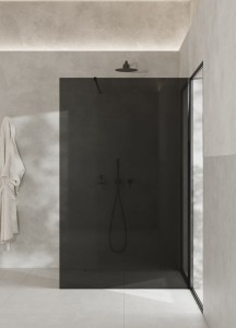 Ścinka prysznicowa COMO WALL typu Walk-in 110 szkło czarne profil czarny SPR-001CZ-110CZ
