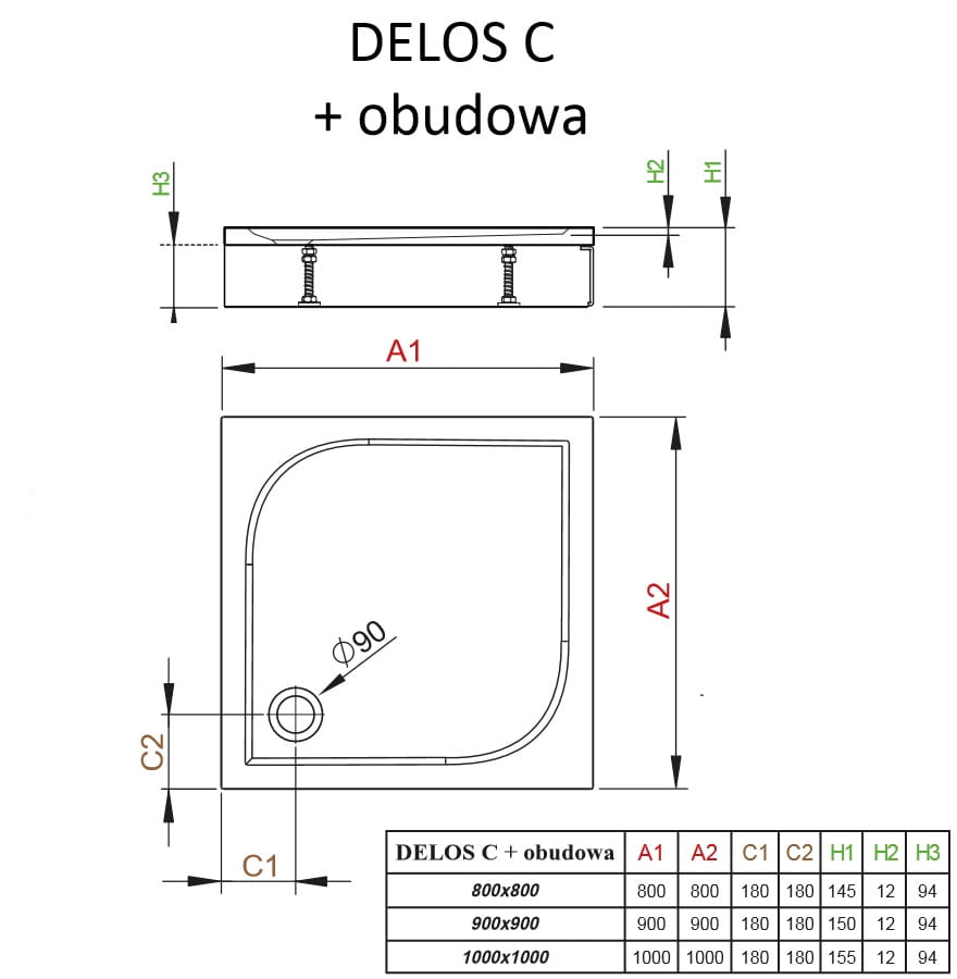DELOS C 100x100 cm płytki kwadratowy brodzik akrylowy z obudową 4C11170-03 RADAWAY