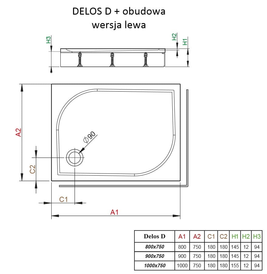 DELOS D 75x90 cm brodzik prostokątny z obudową 4D97514-03L RADAWAY