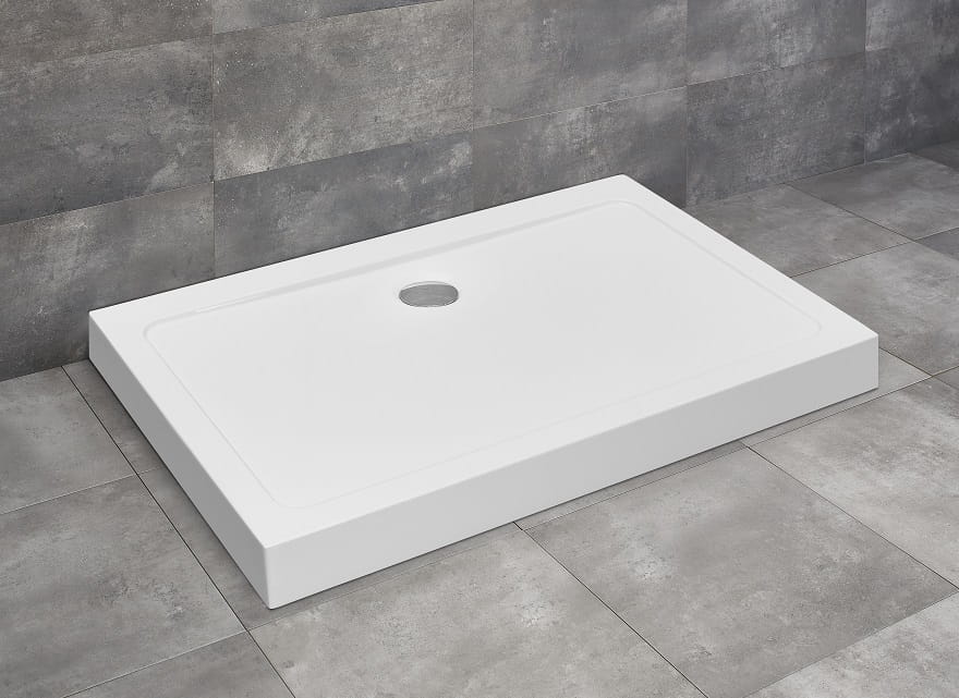 Bardzo płytki brodzik prostokątny o ostrych kształtach pasujący do nowoczesnej stylistyki. Brodzik z zintegrowaną obudową z czterech stron, nóżki w komplecie. Średnica otworu pod syfon to 90 mm. Dedykowane syfon Radaway znajdziecie Państwo poniżej produktu.