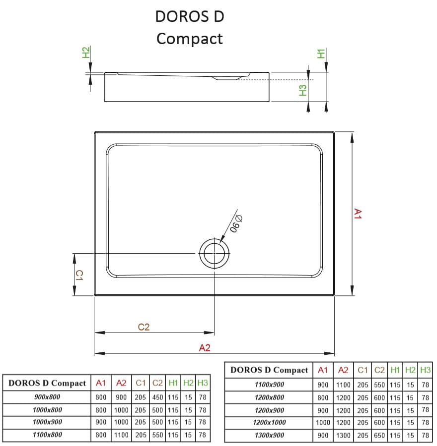 RADAWAY DOROS D Compact prostokątny brodzik akrylowy z zintegrowaną obudową SDRD1180-05