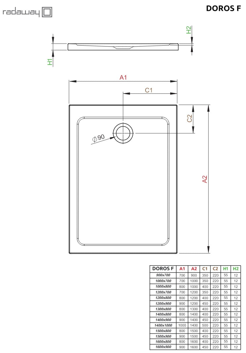 Brodzik prostokątny akrylowy Radaway z serii DOROS F 100 x 140 cm Nr katalogowy: SDRF1410-01