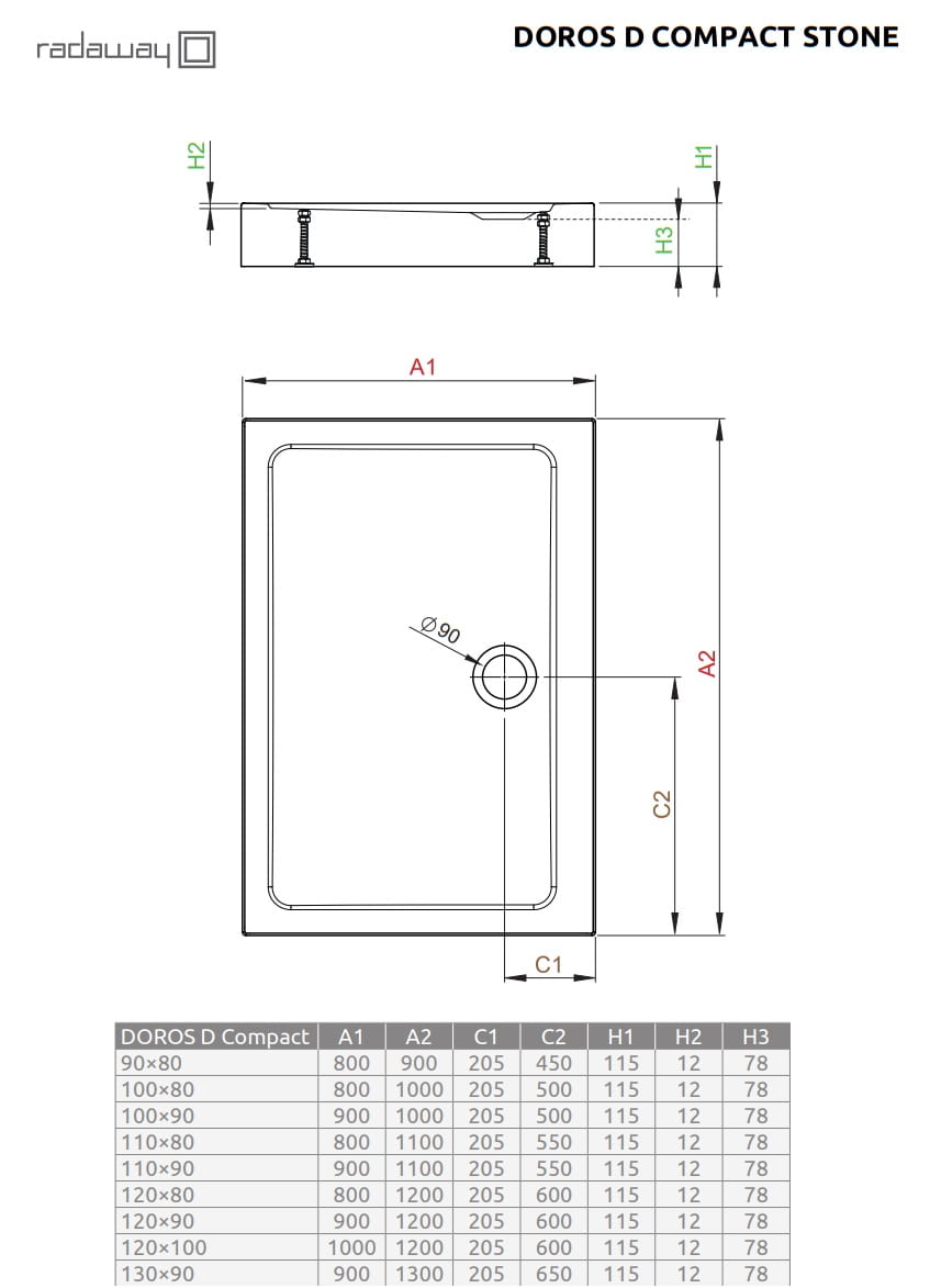 RADAWAY DOROS D Compact Stone Black akrylowy brodzik prostokątny SDRD1280-05-54S 120x80