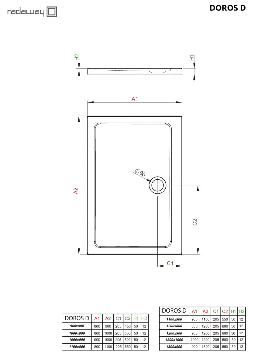 Bardzo płytki brodzik kwadratowy przeznaczony o montażu bezpośrednio na podłodze. Średnica otworu pod syfon to 90 mm. Dedykowane syfon Radaway znajdziecie Państwo poniżej produktu.