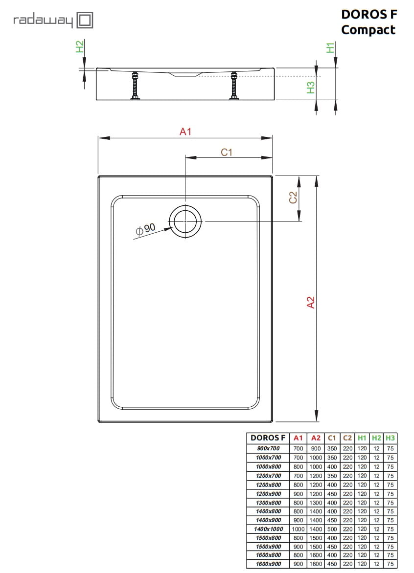 DOROS F Compact Stone Black 120x70 cm brodzik prostokątny akrylowy SDRFP1270-05-54S RADAWAY