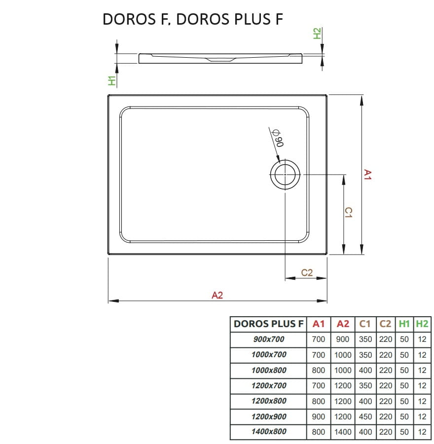 DOROS F PLUS 90x120 cm brodzik prostokątny akrylowy z wypełnieniem SDRFP1290-01 RADAWAY