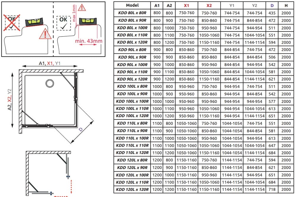 Prostokątna kabina FURO KDD 100 lewa x 80 prawa szkło przejrzyste profile czarne Radaway 10105100-54-01L/10105080-54-01R