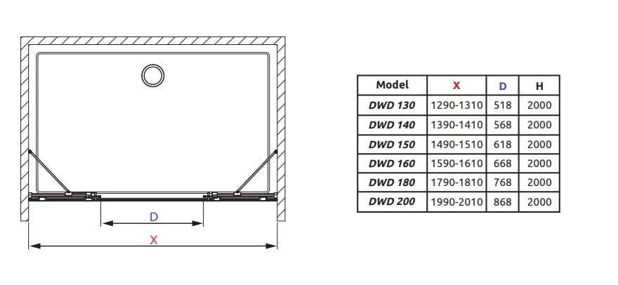 Drzwi wnękowe FURO DWD 130 szkło przejrzyste Radaway 10108363-01-01 + 10111317-01-01