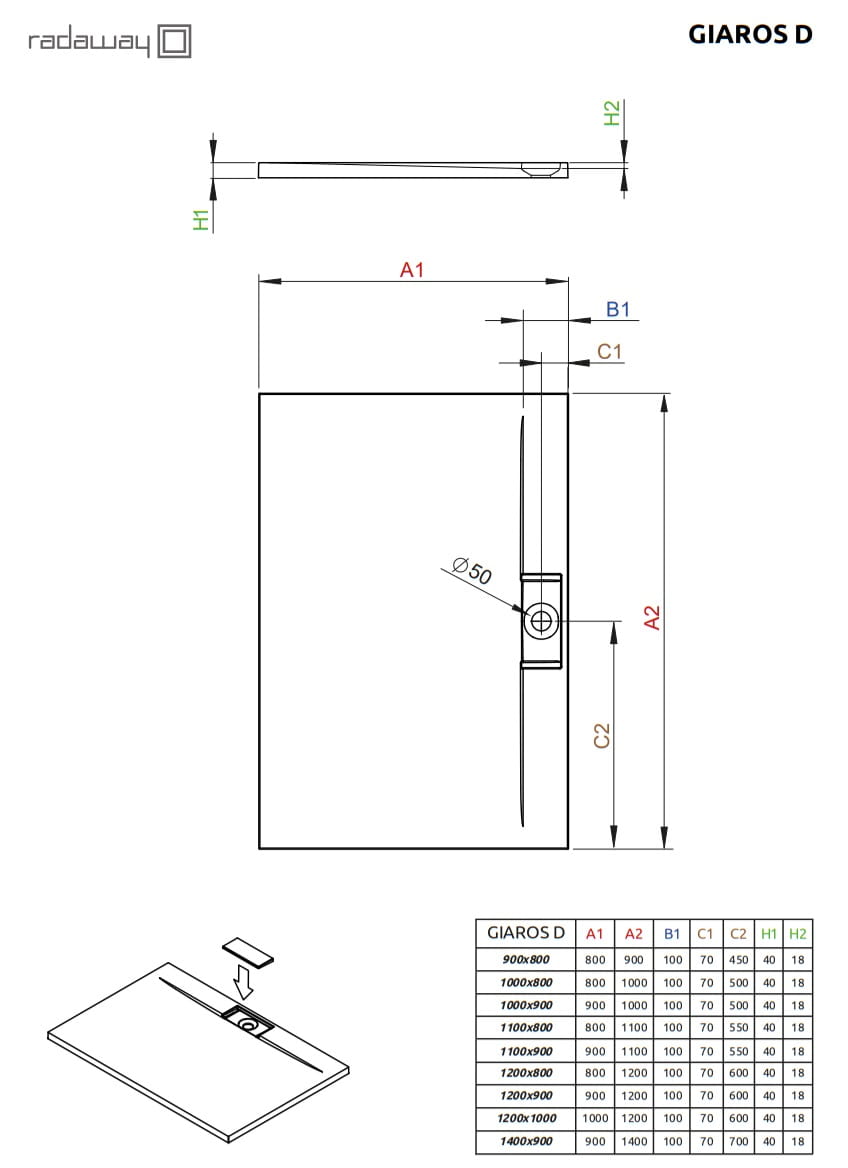 Bardzo płytki brodzik prostokątny o ostrych kształtach pasujący do nowoczesnej stylistyki. Brodzik przeznaczony do montażu bezpośrednio na podłodze z inowacyjnie umieszczonym syfonem; syfon o średnicy 50 mm. Proponowany syfon Radaway 5SL1, samoczyszczący o podwyższonej prędkości spływu wody.