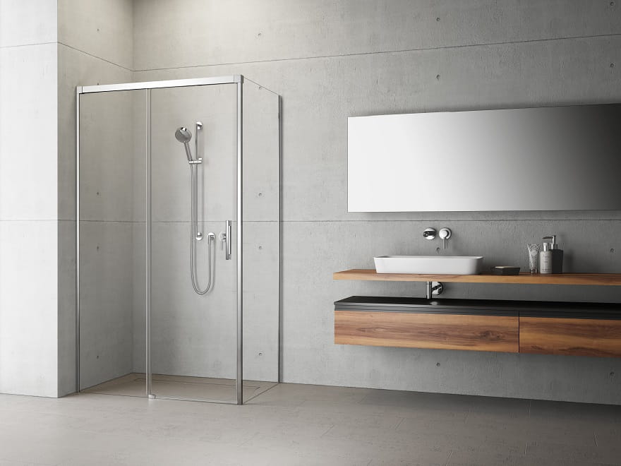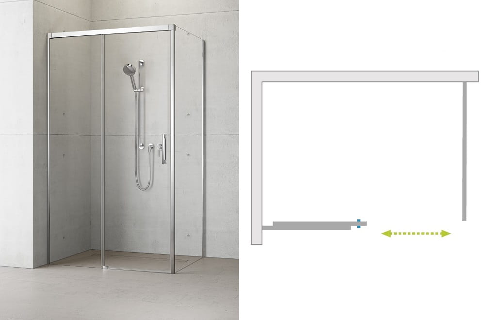 Kabina kwadratowa IDEA KDJ z drzwiami suwanymi 120 wariant lewy oraz ścianką boczną prawą 120 szkło przejrzyste 387042-01-01L/ 387054-01-01R