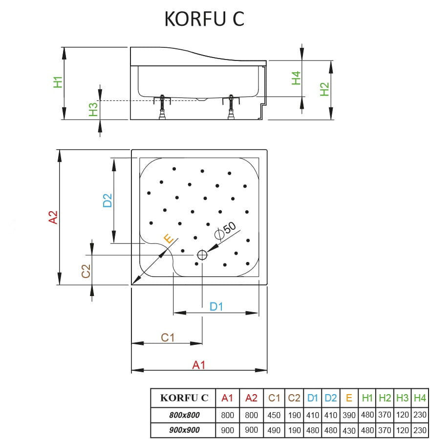 KORFU C 90x90 cm głęboki brodzik akrylowy kwadratowy 4C99400-03 RADAWAY