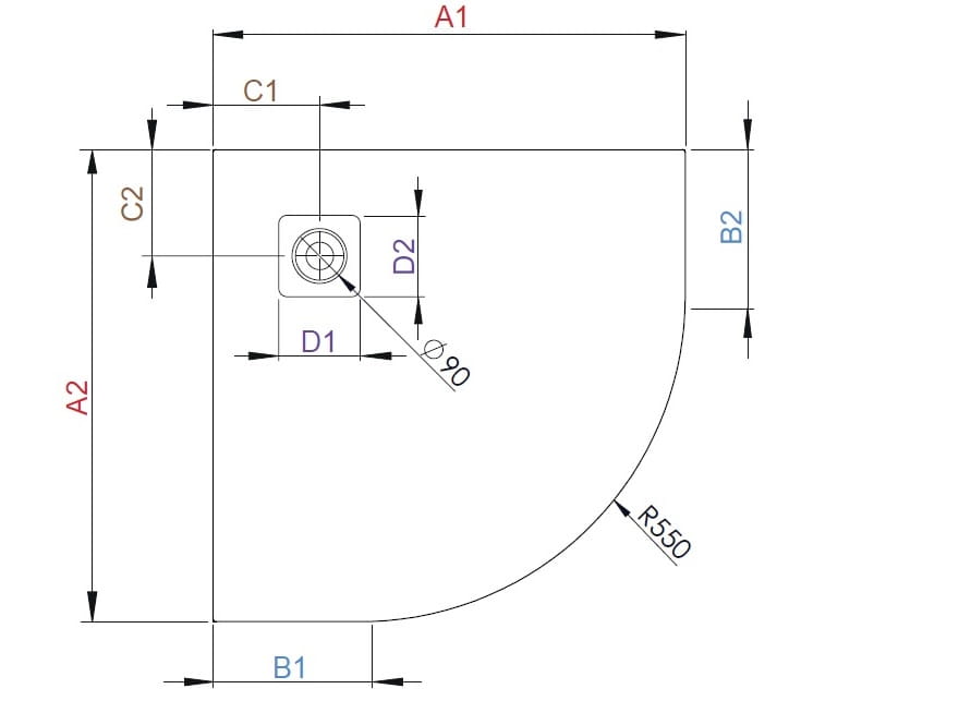 Brodzik posiada otwór odpływowy O 90 mm