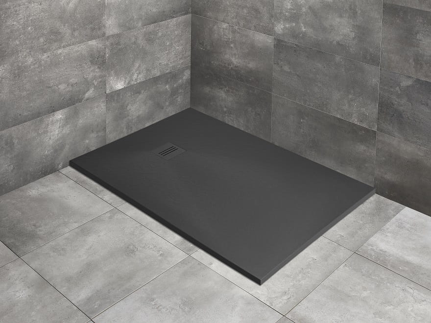 RADAWAY KYNTOS F prostokątny brodzik z konglomeratu marmurowego w kolorze czarny black HKF12080-54
