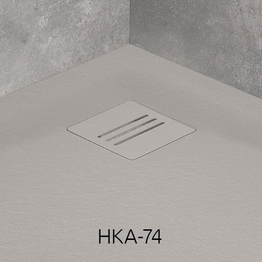 Bardzo płytki brodzik prostokątny z konglomeratu marmurowego do montażu bezpośrednio na podłodze. Brodzik można przyciąć do indywidualnego rozmiaru. Średnica otworu pod syfon to 90 mm.