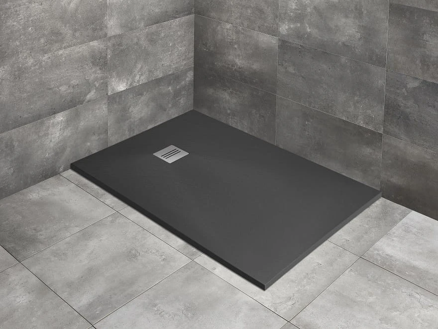 RADAWAY KYNTOS F prostokątny brodzik z konglomeratu marmurowego w kolorze antracytowym HKF21090-64