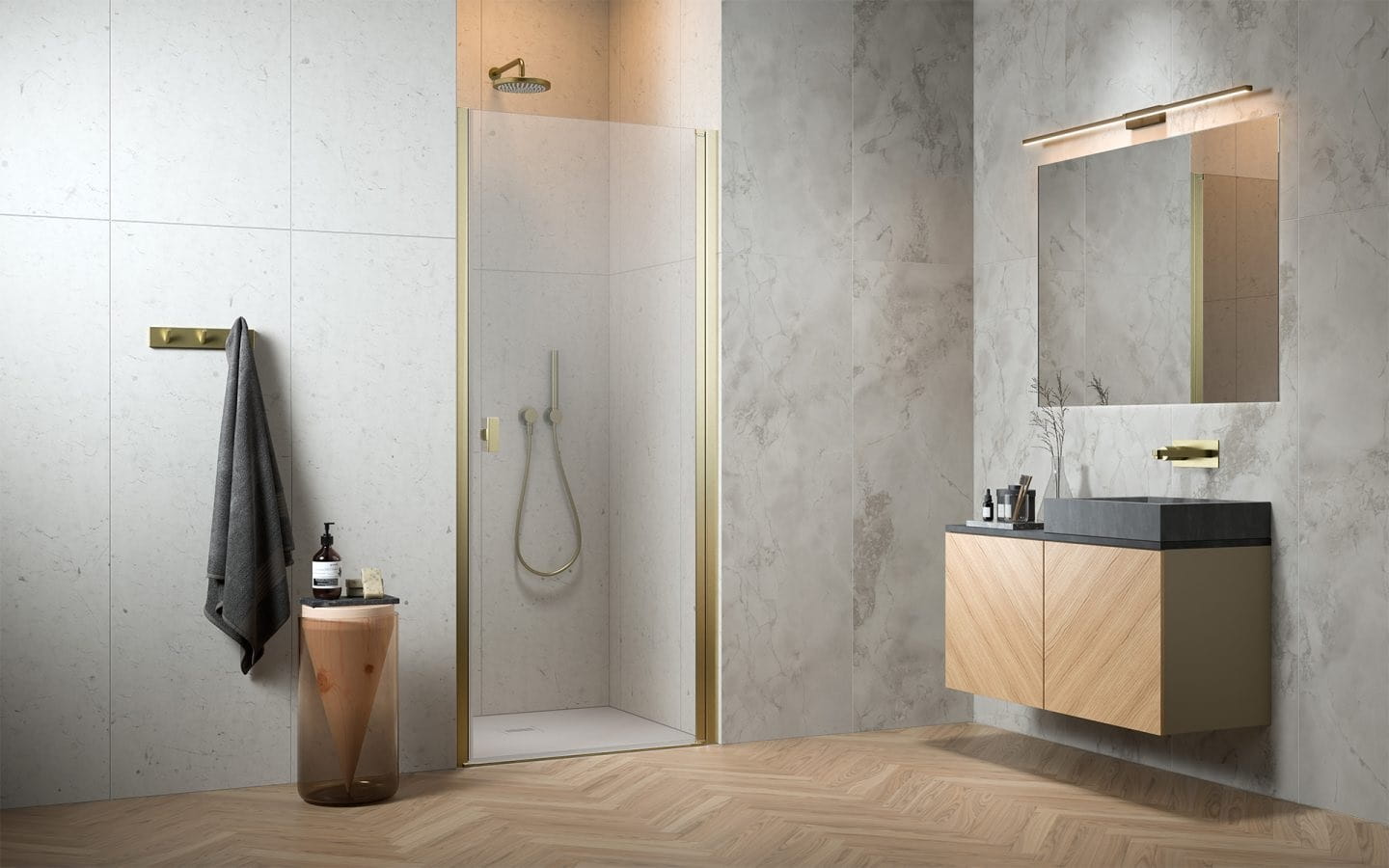 Drzwi prysznicowe NES DWJ I 70 prawe wykończenie w kolorze złoty szczotkowany szkło przejrzyste Radaway 10026070-99-01R