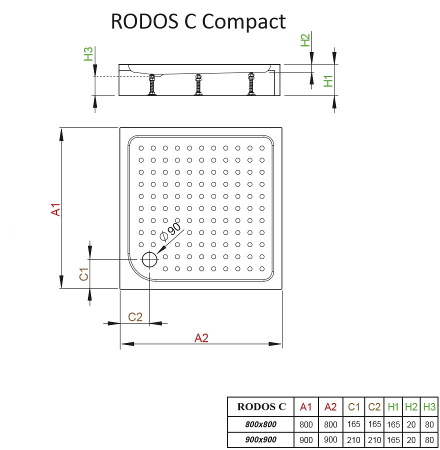 RODOS C Compact 80x80 cm kwadratowy brodzik akrylowy 4K88155-04 RADAWAY